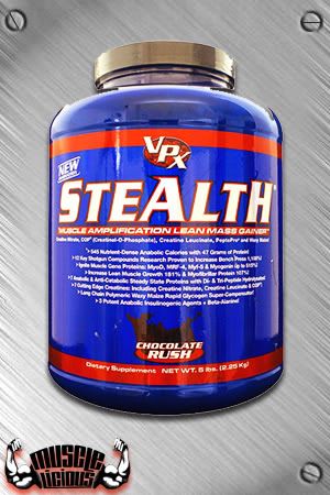 STEALTH™ Muscle Amplification Lean Mass Gainer™ contains a synergistic combination of research proven compounds to shift muscles into maximal anabolic overdrive. Unlike other gainers, STEALTH™ is also designed to give you explosive power and strength with compounds proven to increase bench press 1,108% over a placebo. VPX’s STEALTH™ is infused with 12 key NO-Shotgun™ ingredients university proven to radically increase 4 muscle gene proteins up to 118% and amplify Muscle DNA by 148.65%. Muscle DNA is the genetic code that tells the muscle to split and form new muscle fibers known as hyperplasia. STEALTH™-induced hyperplasia allows you to add muscle mass geometrically by forming new muscle. STEALTH™ contains 7 potent proteins. This mass-building mixture feeds your muscles with the building blocks to make existing muscles larger and to form new muscle tissue. Whey and Casein Protein Hydrolysates are the most anabolic proteins known to man and enter the blood rapidly causing a massive spike in insulin -- the most anabolic of all hormones including growth hormone and testosterone. These fractionated Whey and Casein Di- and Tri-Peptides have an insulinotrophic effect that forces amino acid transport into muscles to induce rapid growth. Furthermore, this unique combination of fast and slow proteins provides an instant anabolic kick followed by a slow trickle of amino acids for anti-catabolic muscle breakdown prevention. Coupled with these superlative proteins are cutting edge Creatine Nitrate, COP™ (Creatinol-O-Phosphate) and Creatine Leucinate to drive muscle strength and muscle growth through the stratosphere. Research shows that these compounds can activate satellite cells, enhance myofibrillar protein synthesis, and top off phosphagen energy concentrations in muscle. Specialized unsaturated fats are utilized for superior muscle cell membrane integrity along with high molecular weight polymers for glycogen super-compensation. VPX’s STEALTH™ is the superior muscle mass builder that is perfect to lay down slabs of mind-blowing mass. In the old-school days the weight gainer with the most calories won the mass war but made people look and feel like trash. VPX STEALTH™ has changed the rules of rapid muscular weight gain by adding the world’s most powerful nutrient partitioning agents. Agents so powerful that they were proven to alter muscle gene proteins with just one ounce of NO-Shotgun™ per day! If just one ounce of NO-Shotgun™ a day increased lean muscle mass by 5.5 pounds, imagine what 10 ounces of STEALTH™ can do!